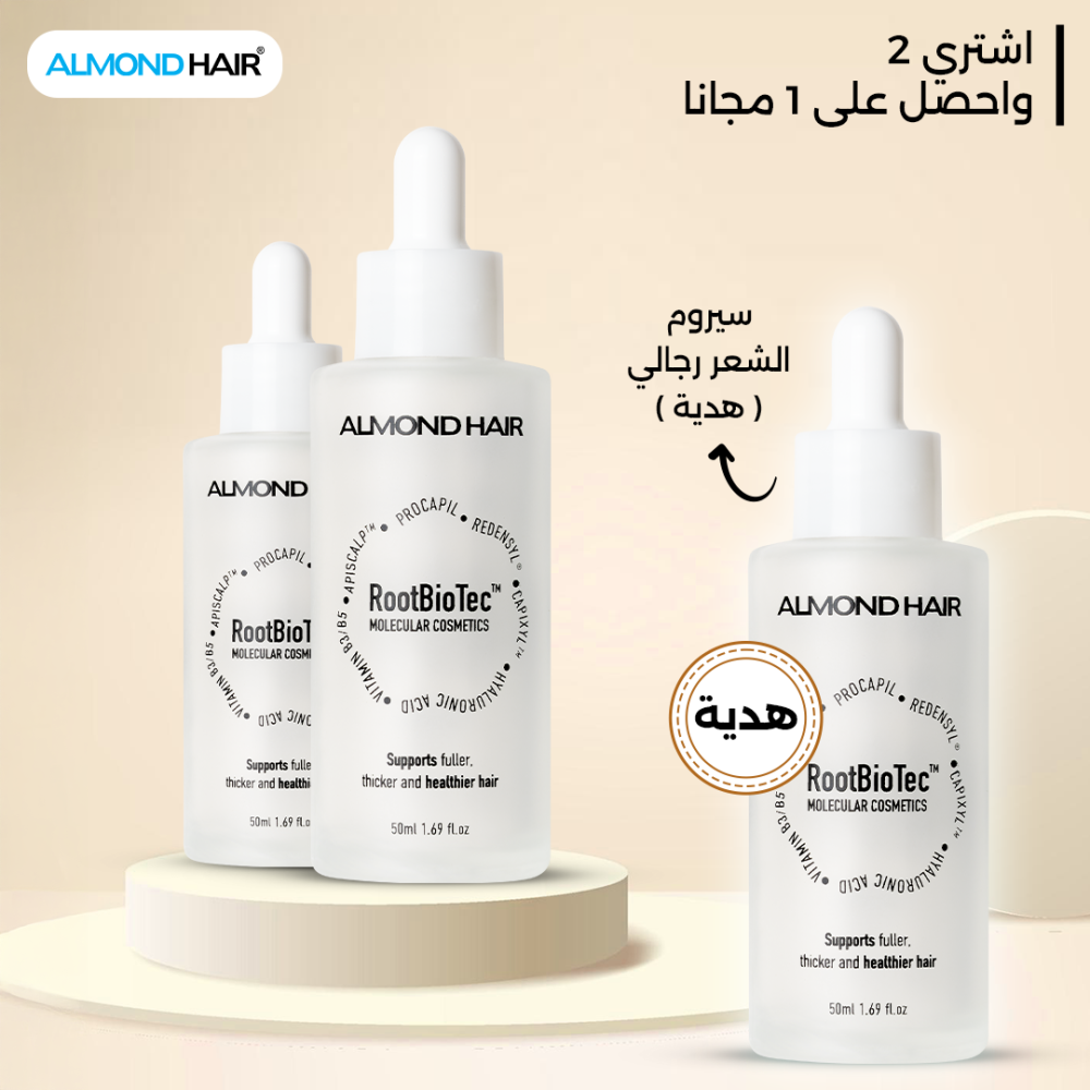 العرض يشمل عبوتين من السيروم + الثالثة مجانًا لتكملة كورس العلاج الكامل وضمان نتائج أقوى وثبات أطول.